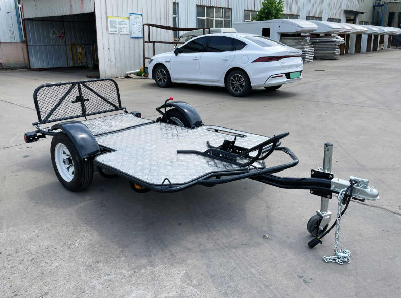 • Features: Sturdy steel frame with aluminum patterned base, designed for safe transport of a single motorcycle.